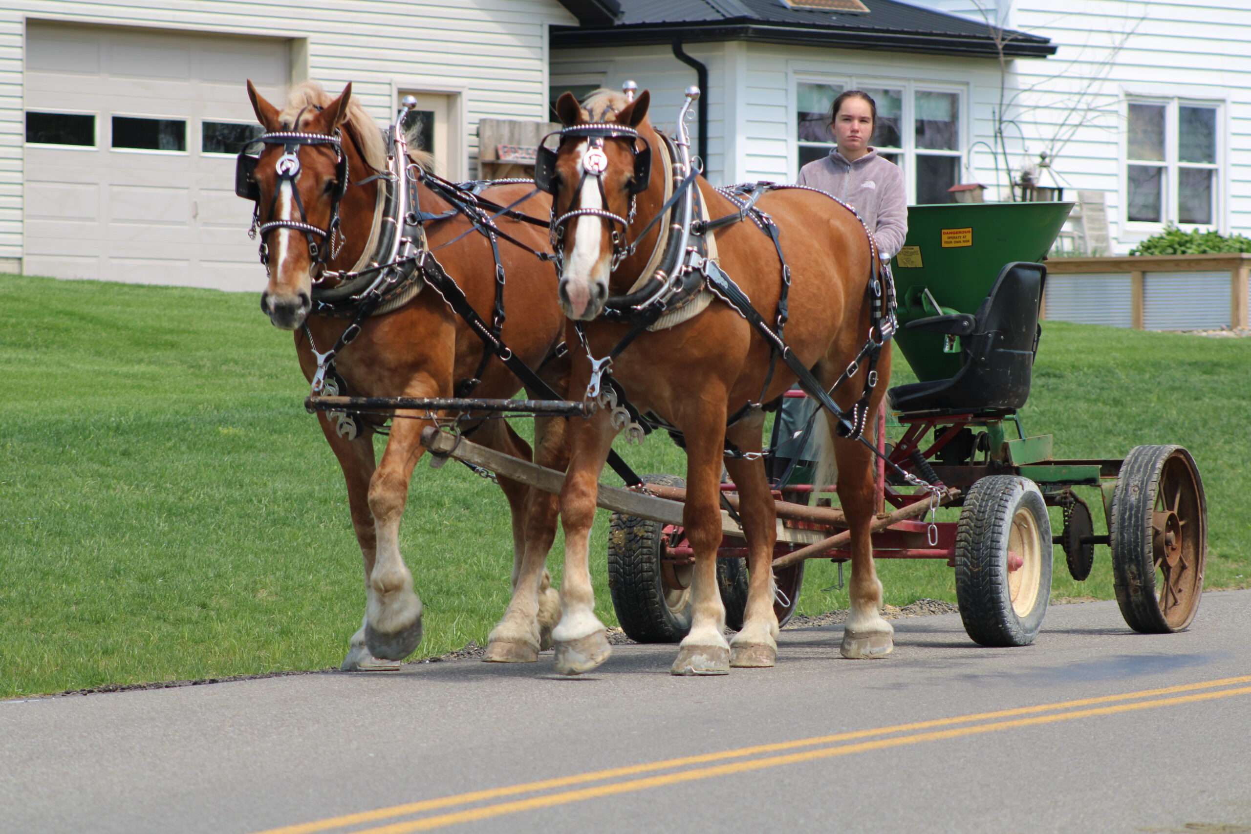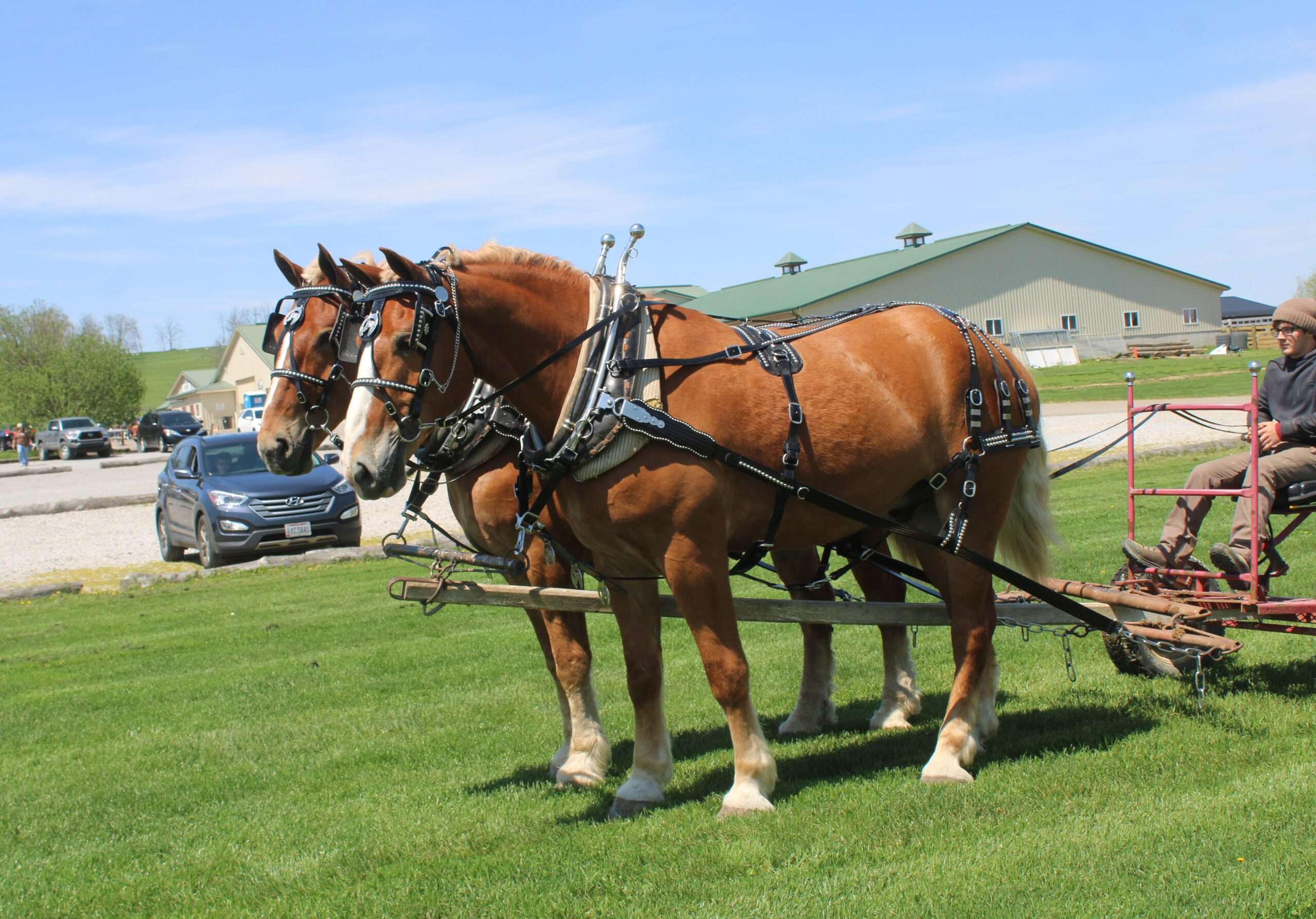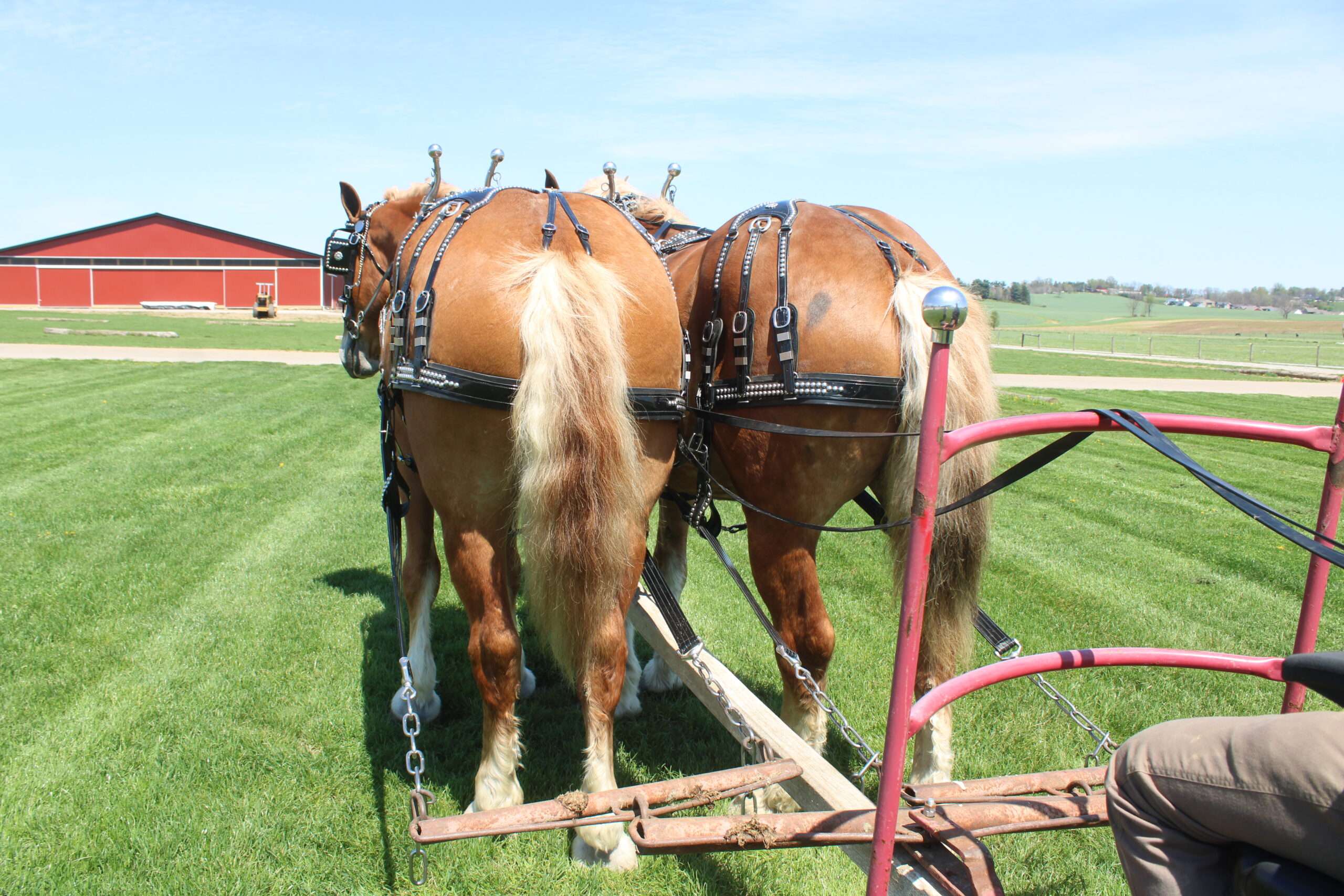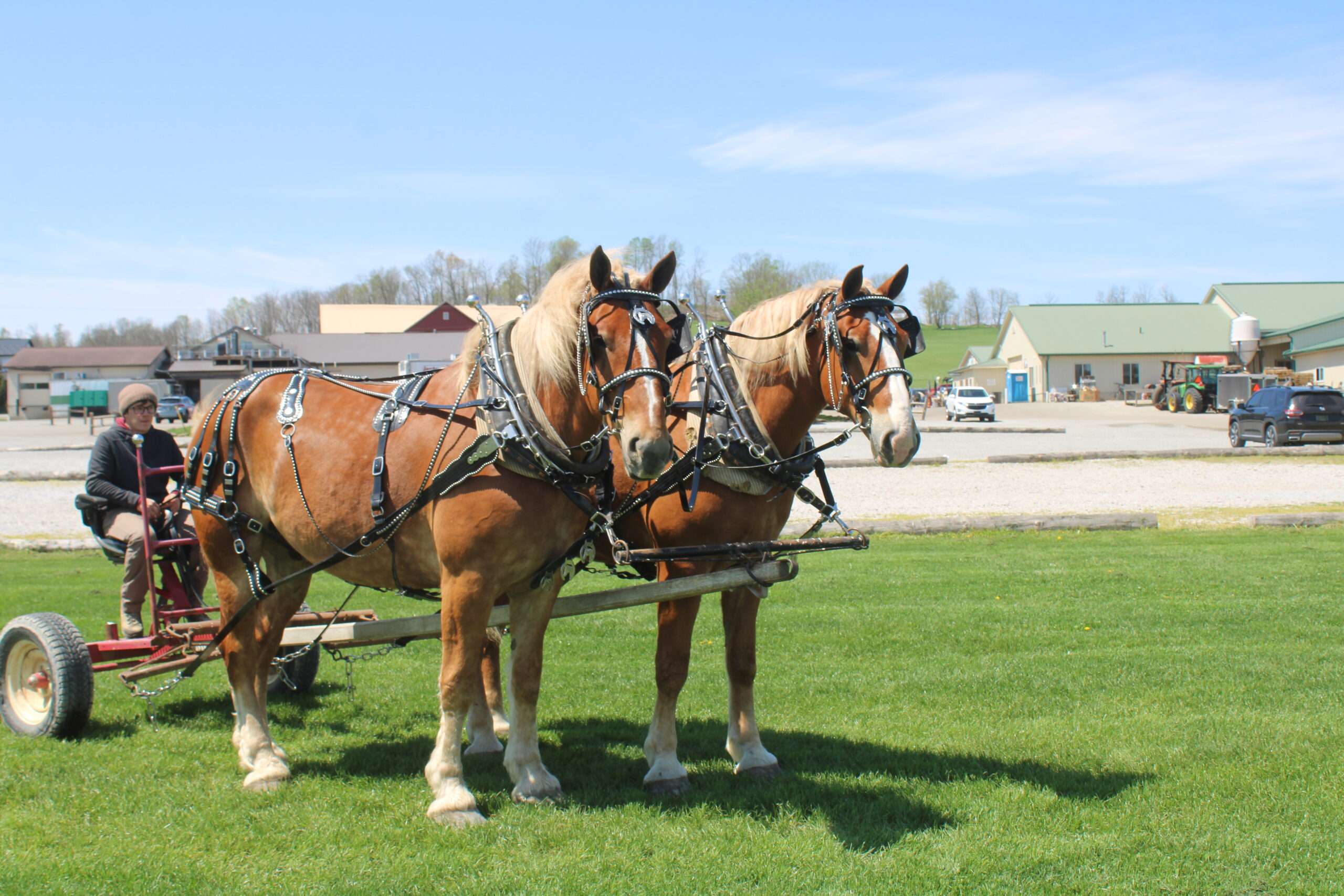 Here is a team of 5 & 6 year old Belgian Geldings . These boys were born and raised on the same farm and have been together there entire life .They are best friends but are not sour .They are 100% traffic and kids safe, and anyone can drive them. Mel & Marty have been used this winter to gather sap. We have driven them on either side of the tong. If you want a team that can dig in and get the work done, and next go for a pleasure ride, and wanna go at a slow pace Mel& Marty don't care which it is, you just tell them what to do and they will do there best!!!!!