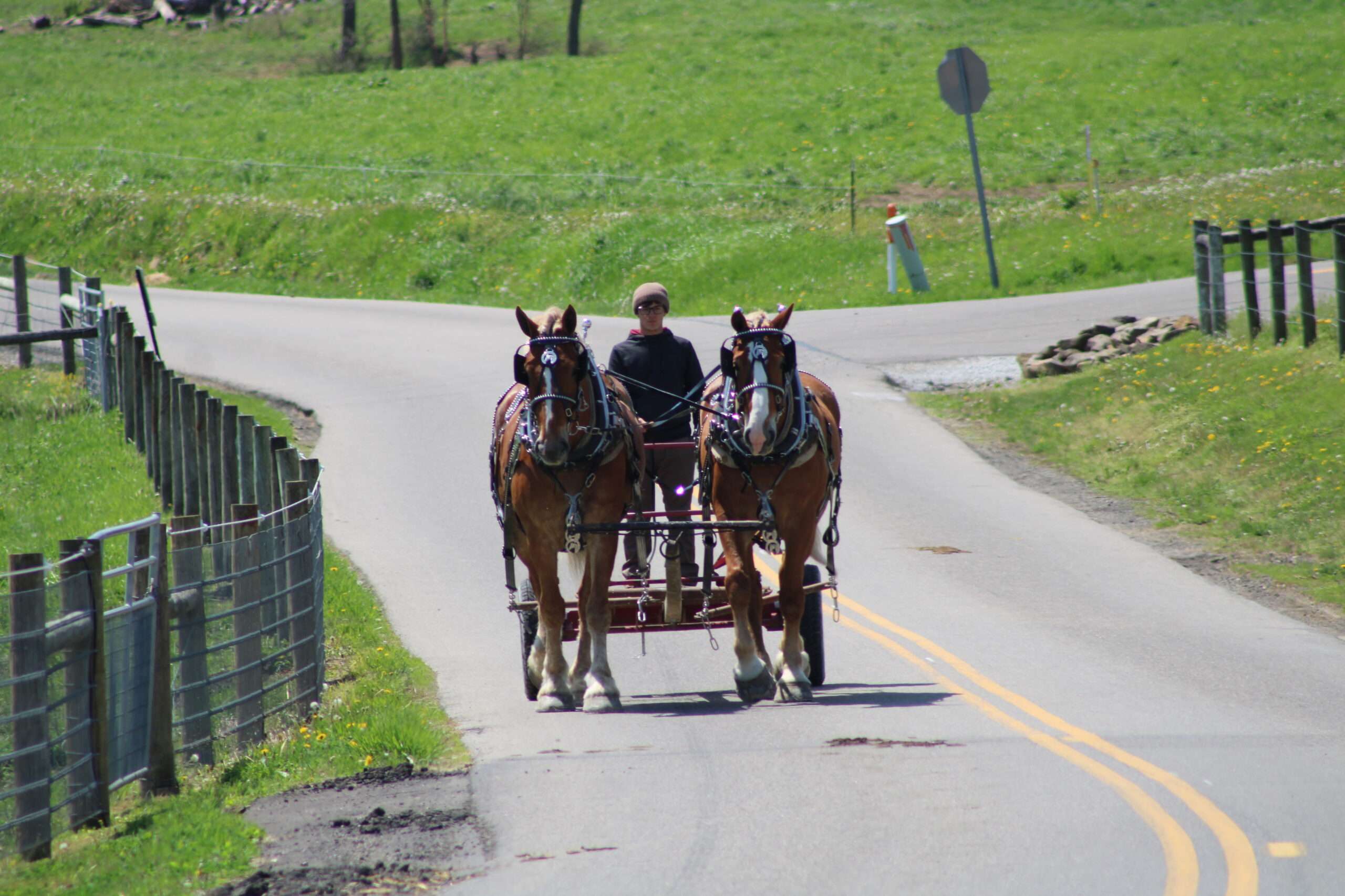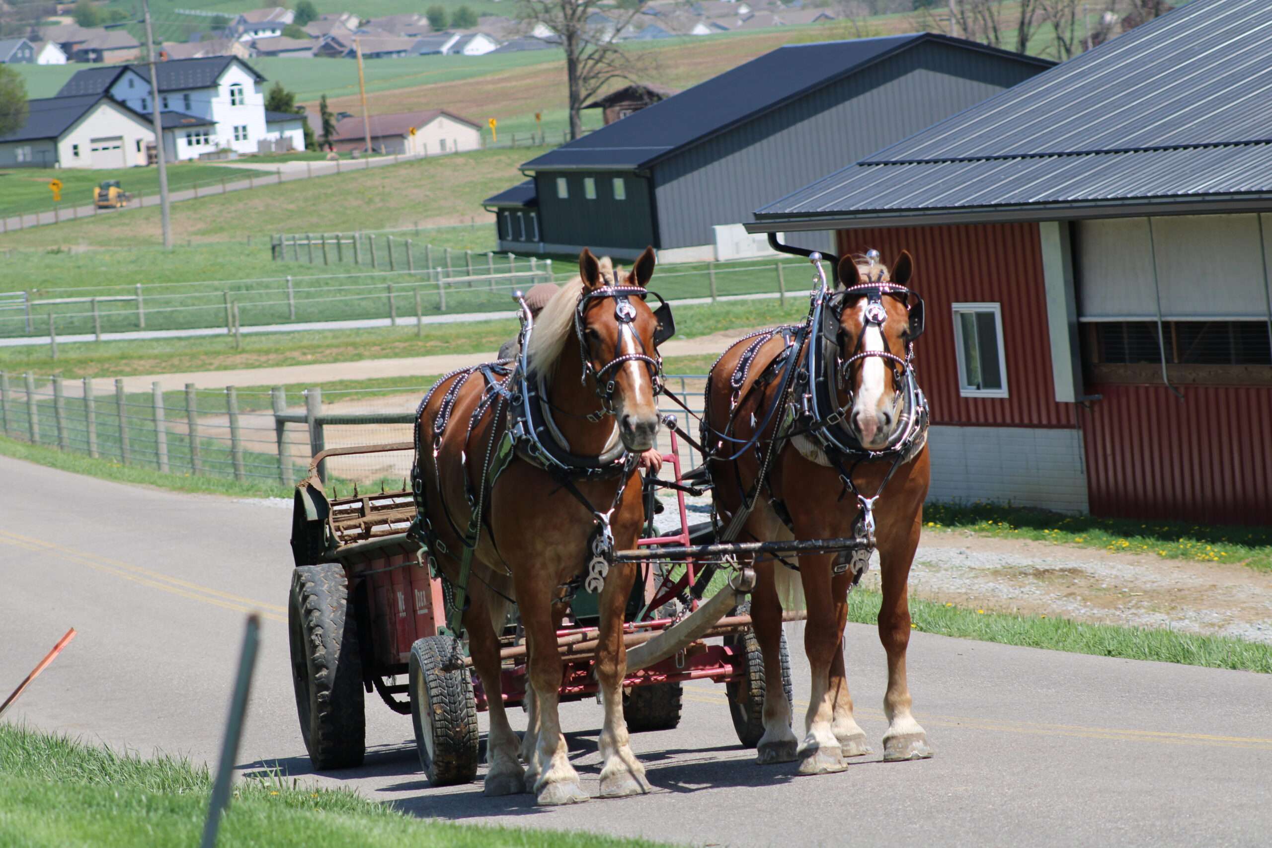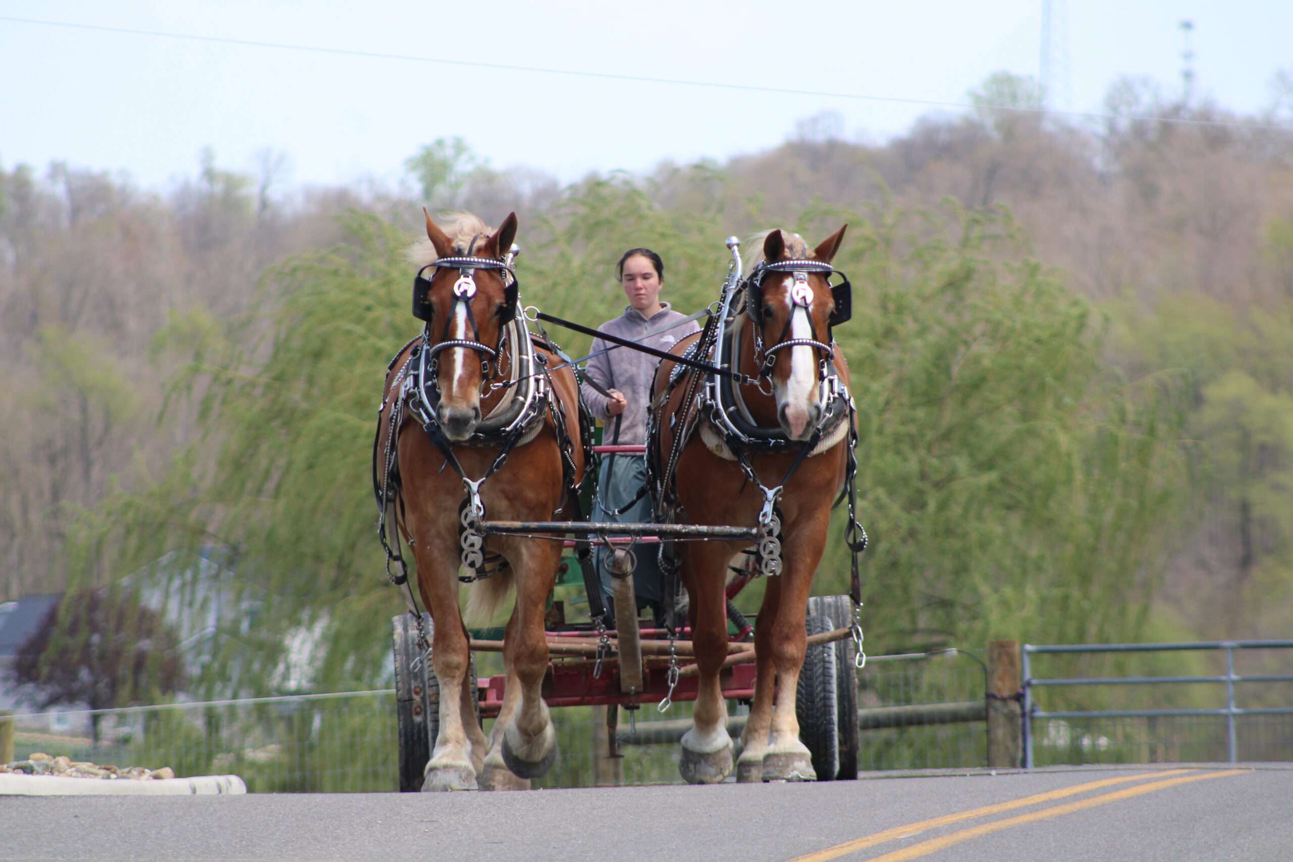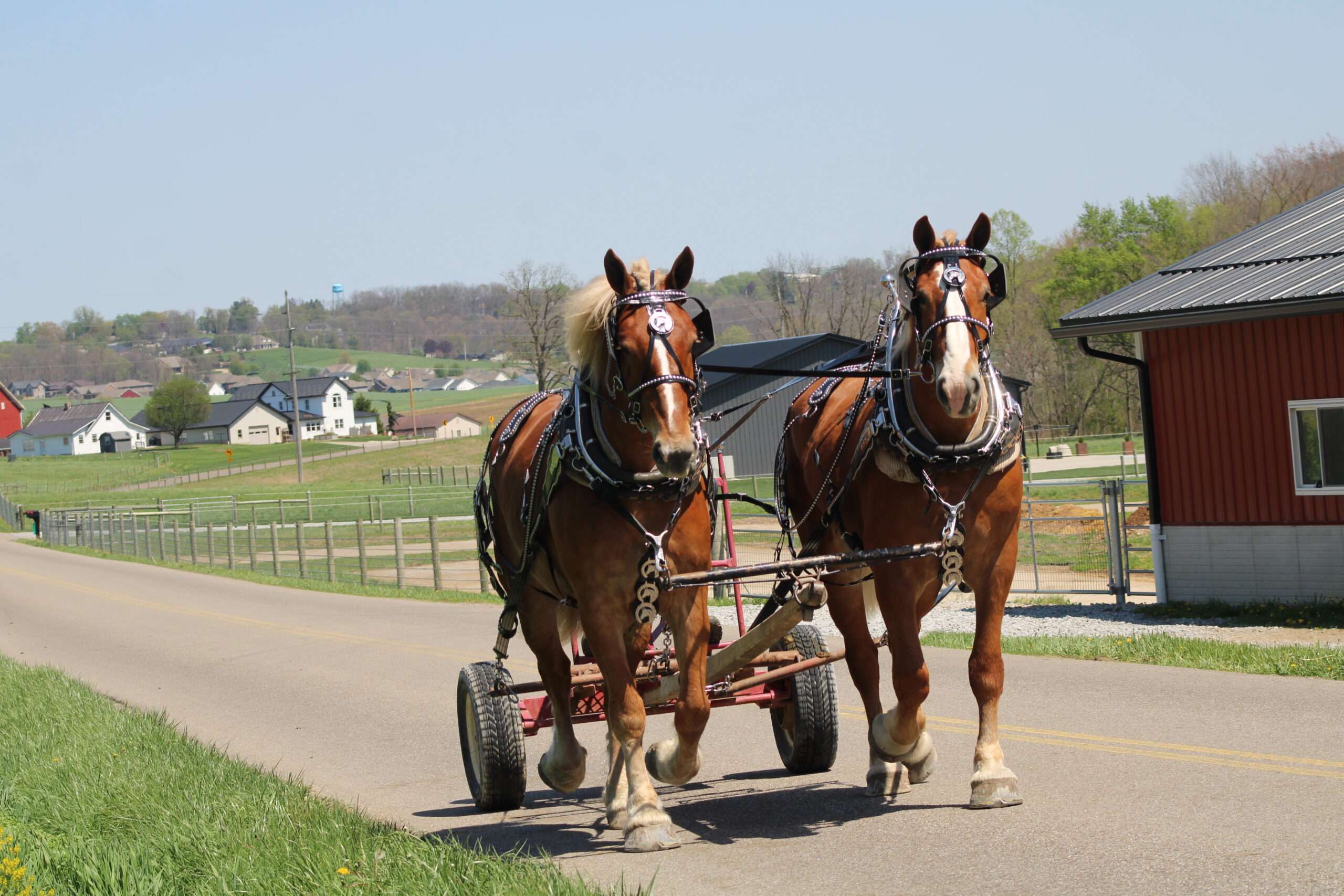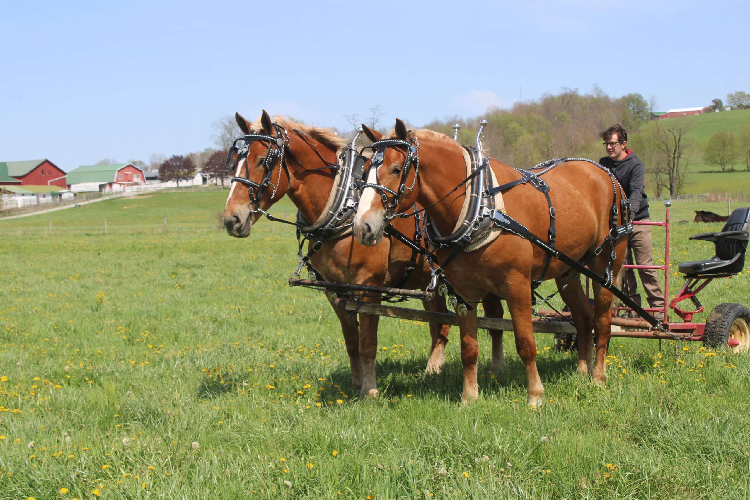 Here is a team of 5 & 6 year old Belgian Geldings . These boys were born and raised on the same farm and have been together there entire life .They are best friends but are not sour .They are 100% traffic and kids safe, and anyone can drive them. Mel & Marty have been used this winter to gather sap. We have driven them on either side of the tong. If you want a team that can dig in and get the work done, and next go for a pleasure ride, and wanna go at a slow pace Mel& Marty don't care which it is, you just tell them what to do and they will do there best!!!!!