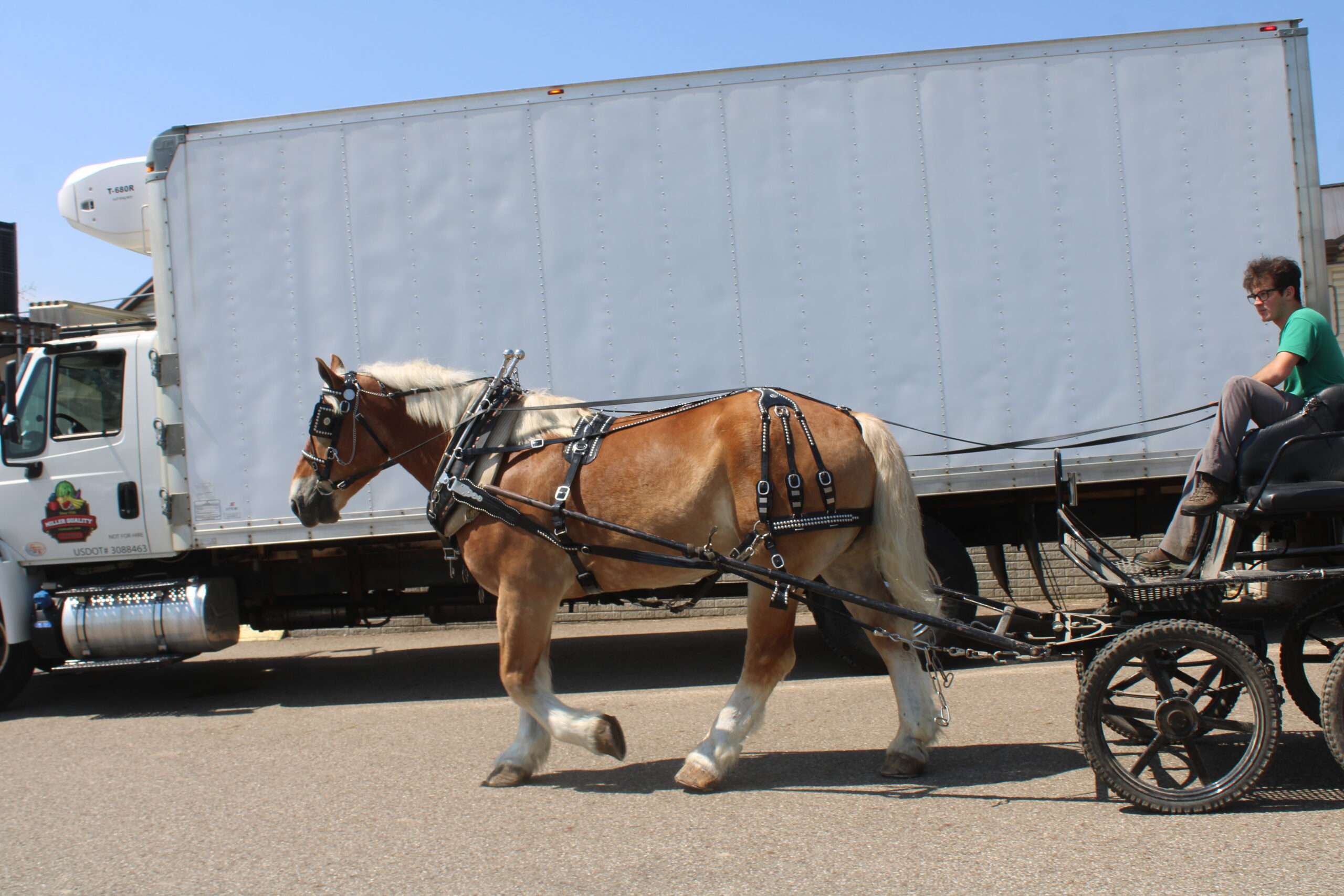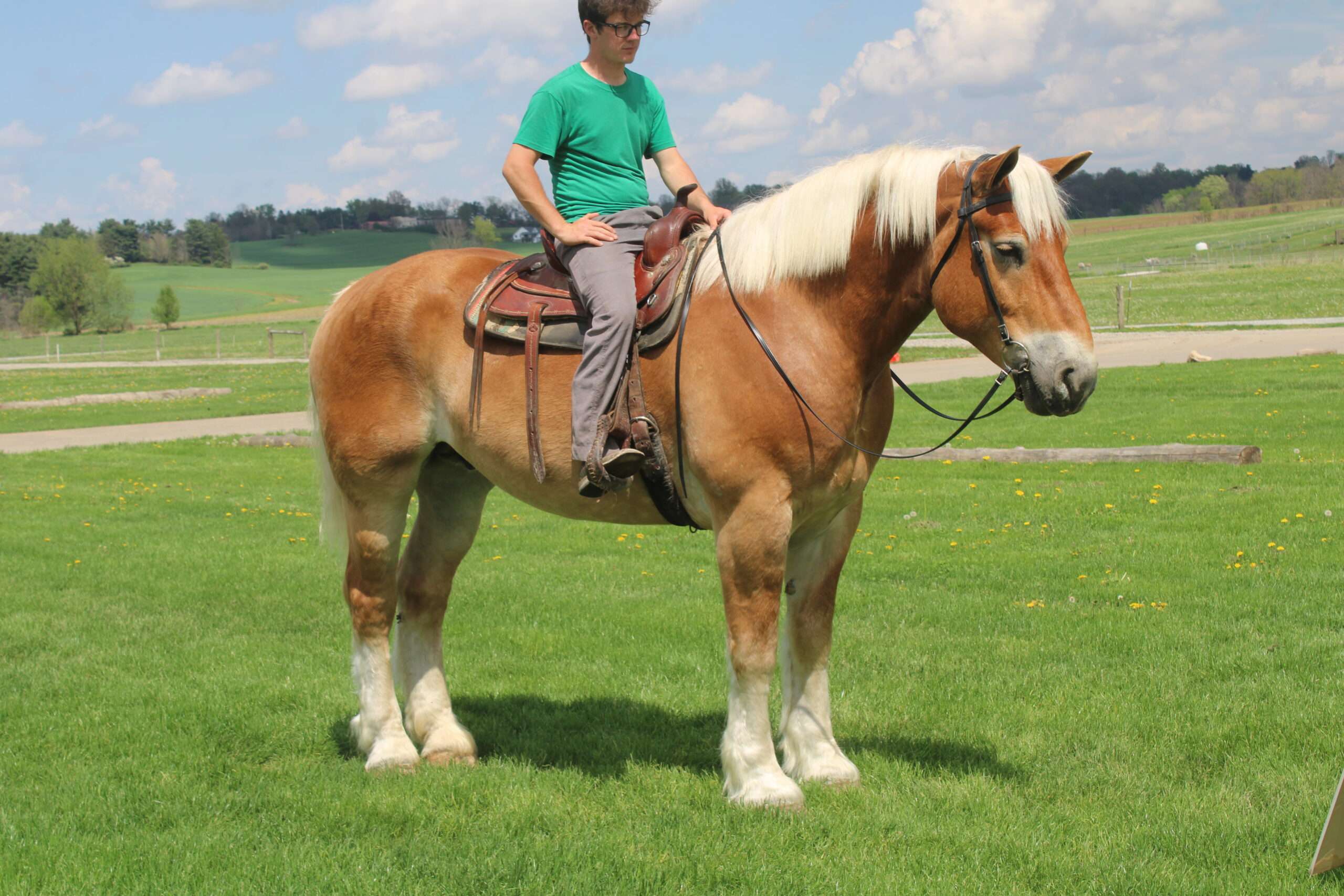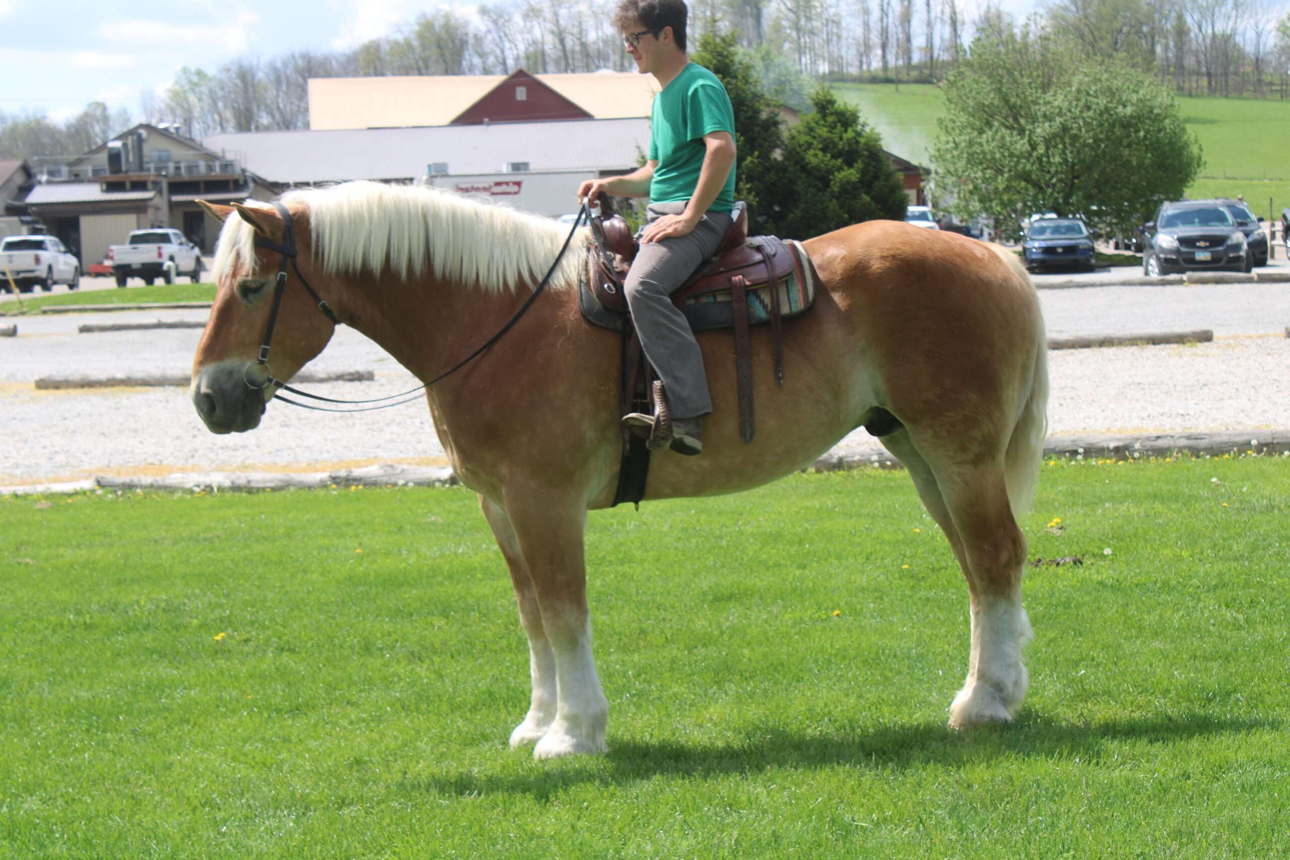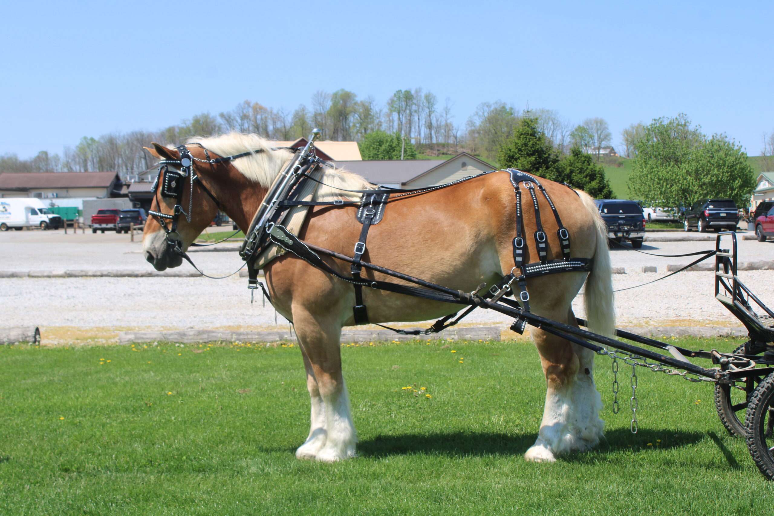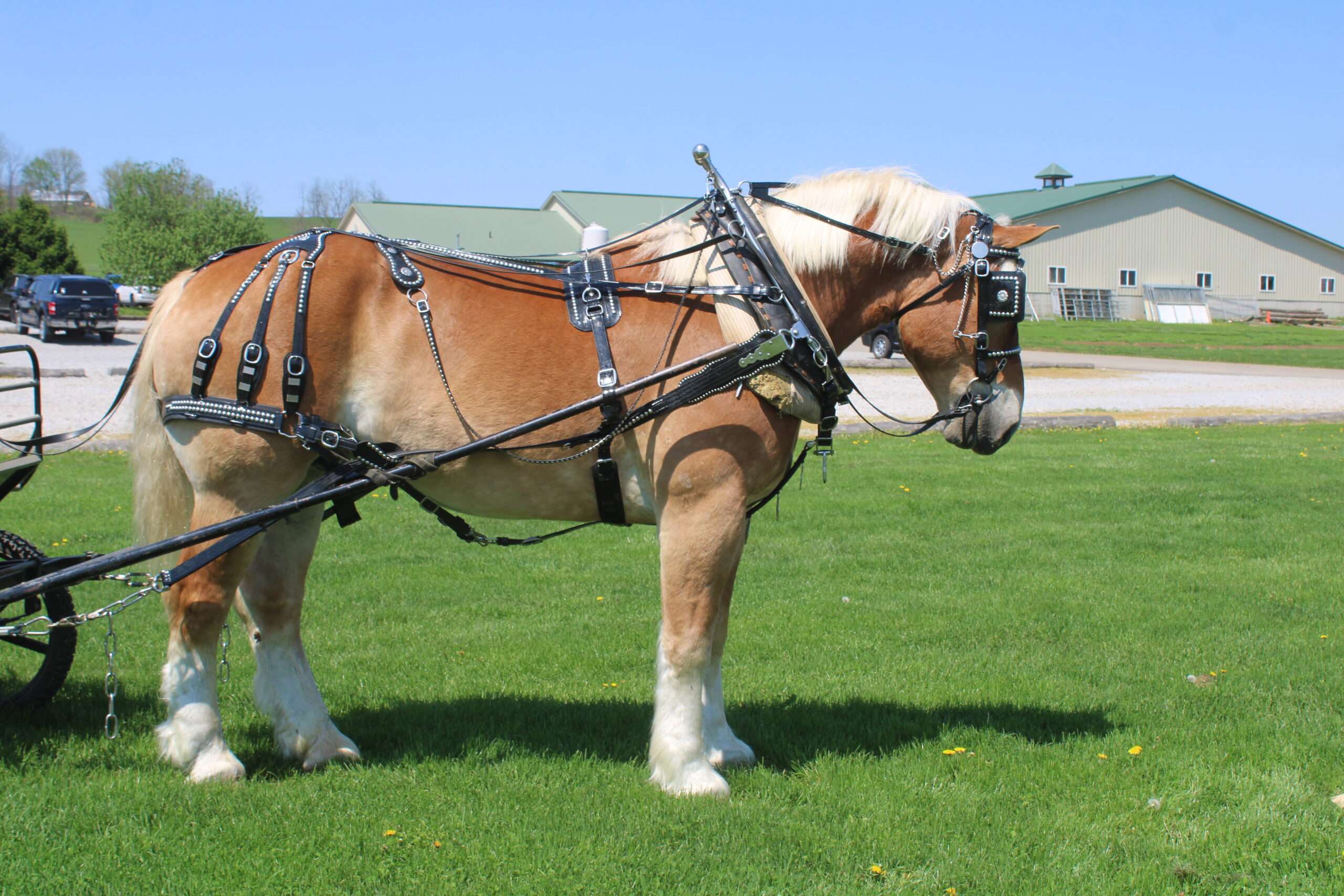 A 9 year old Belgian gelding. Oscar is what I would call the perfect description of A family horse, put the kids on his back and go for A trail ride. He is very well trained to ride and drive, he has been driven single or double with another horse, Oscar doesn't mind either one. He has been on lots of trails, through some heavy brush and up and down some very steep hills. The best way to describe Oscar is BROKE,BROKE,BROKE and very steady. He has been in heavy traffic on the busy highways. Oscar has been driven English as well, he is very athletic for a draft horse his size. Oscar stands very well to be bathed, and really does like attention. Oscar has that beautiful Blonde color to him. HERE HE IS HERSHEY'S OSCAR , THE KIND THAT YOU WOULD LOVE TO SEE EVERYDAY !!!!!!