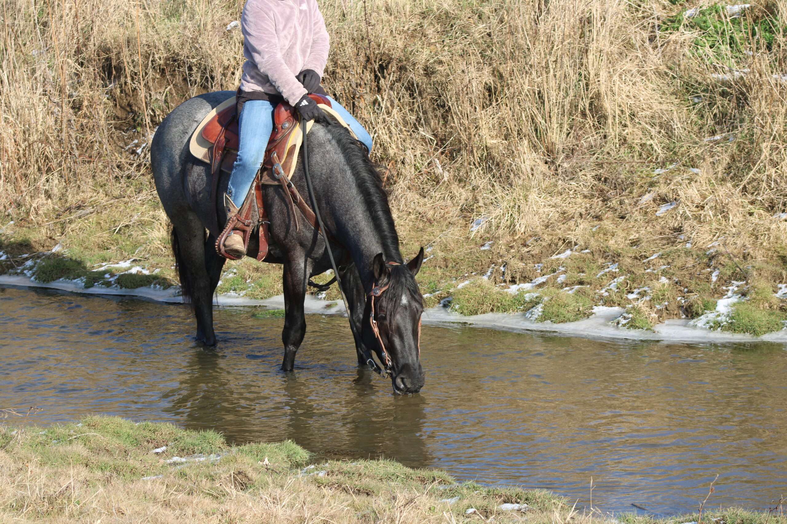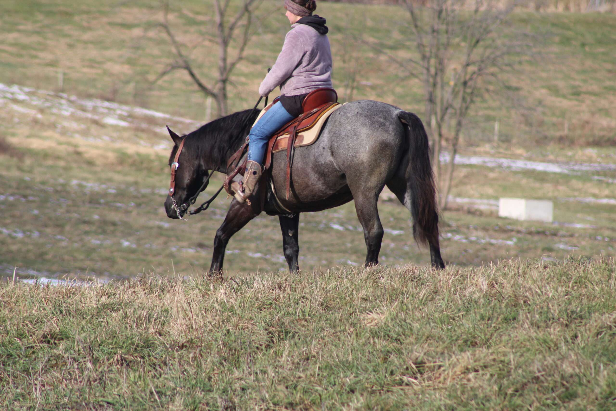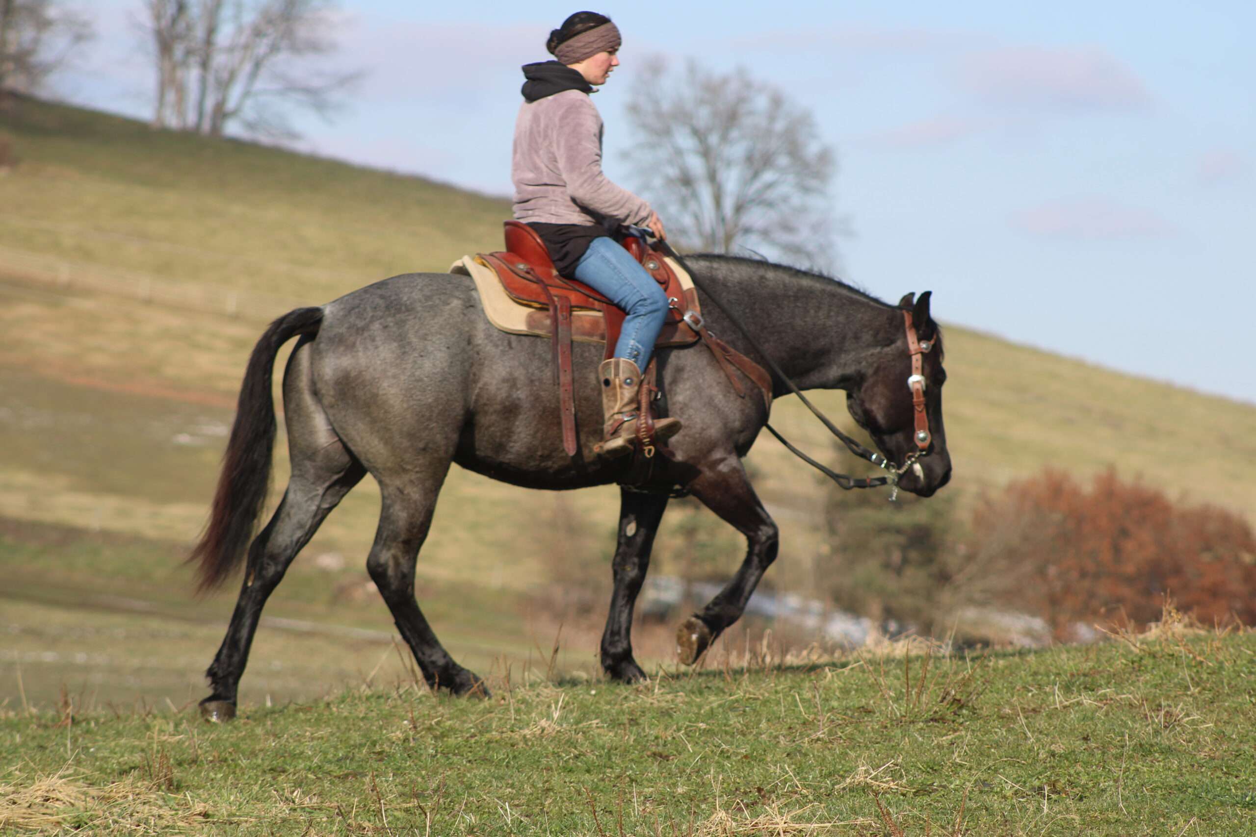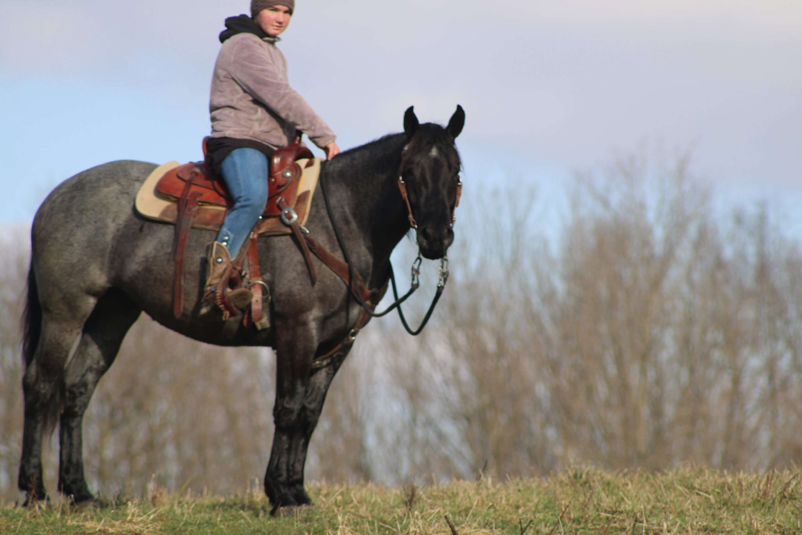 Hershey's Blue Bell is a coming 4 year old Percheron X Quarter Horse mare!! She is very gentle and laid back for her age. "Bell" as we call her most times has been trail ridden a lot and loves to go through water. She is very safe in heavy traffic and doesn't mind the big trucks. Bell picks up both leads and has a nice smooth lope. She stands nice for the farrier and also doesn't mind the clippers. She is easy to catch in the pasture and stands nice to mount. Here is a mare with a lot of future!!! For more info call or text John @ 330-600-0197