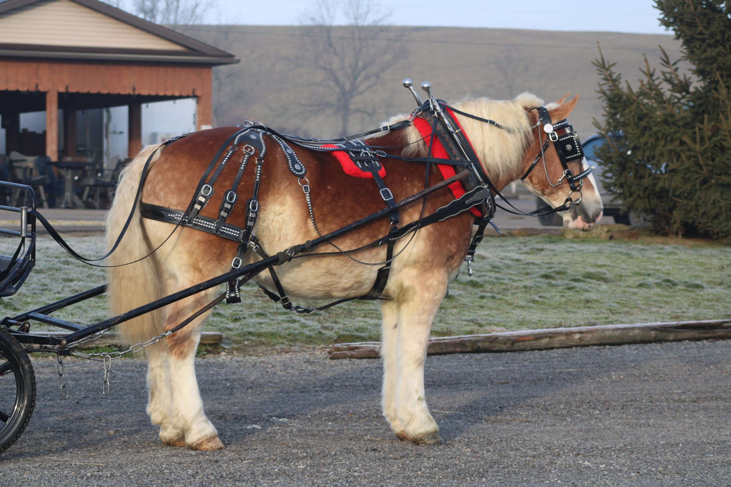 Hershey's Astro is a 7 yr old Belgian quarter horse cross gelding. Here is the old style built. He is absolutely the real deal. If you watch this boy's canter its as smooth as you can find for a horse his size. He has been on lots of trails, through the woods on uneven ground he is very sure footed. He picks up both his leads very well. Riding on the road and out in the fields he does great as well. Now we have talked about the riding but lets not forget he does drive as well. If you wanna learn how to drive Astro will be a great teacher. He does great in traffic. This fall Astro was giving wagon rides to the pumpkin patch. You tell him to stop and he will stand there as long as needed. This boy is a multi task he can give carriage rides plus be a great trail horse and looking good doing it. Here he is Hershey's Astro A TRUE SWEETHEART GENTLE AS CAN BE