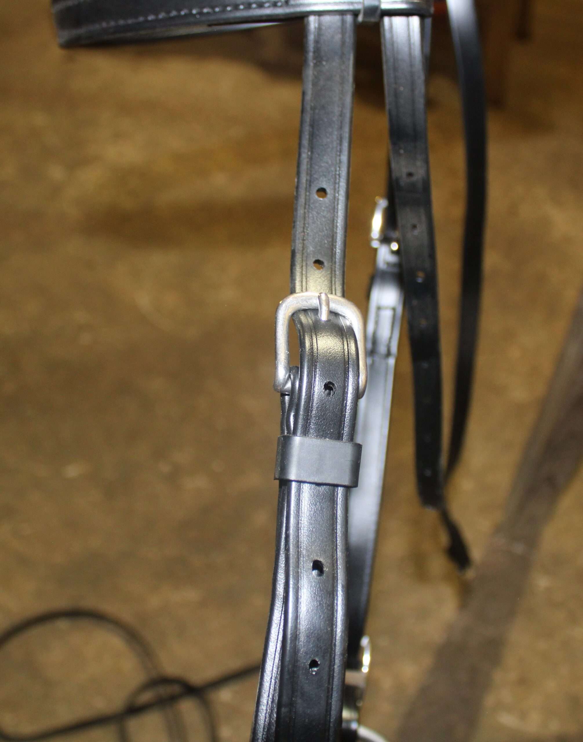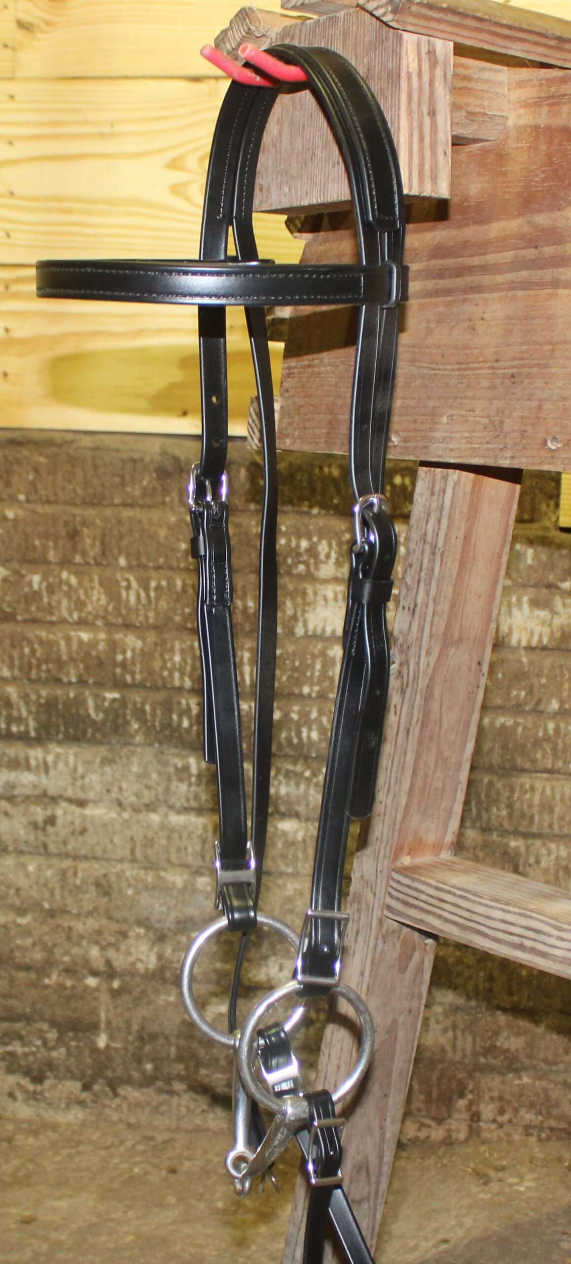 Here's a very comfortable draft bridle. It is very light for the horse to wear and keeps him comfortable even if your riding on a hot day.